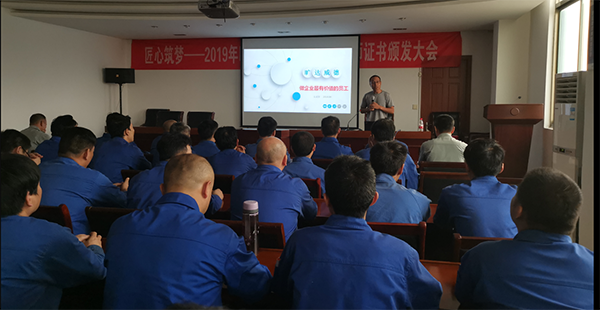 工匠精神已融入到企業(yè)當(dāng)中,技師是現(xiàn)代工匠的代名詞,現(xiàn)代工匠具有“堅(jiān)持、專注、謙恭、自省、敬畏、入魂”的匠心精神,我們公司通過層層推薦,又評(píng)出了一批德藝雙馨的技師。為樹立先進(jìn)、鼓勵(lì)榜樣,大力營(yíng)造公司匠心文化,大會(huì)上對(duì)生產(chǎn)一線骨干員工孫衛(wèi)強(qiáng)等14名中級(jí)技師和張愛林等46名初級(jí)技師頒發(fā)了職業(yè)技能證書。希望他們能繼續(xù)用心工作,追求完美,精益求精,進(jìn)一步為提升威德封頭的品牌價(jià)值作出應(yīng)有的貢獻(xiàn)。